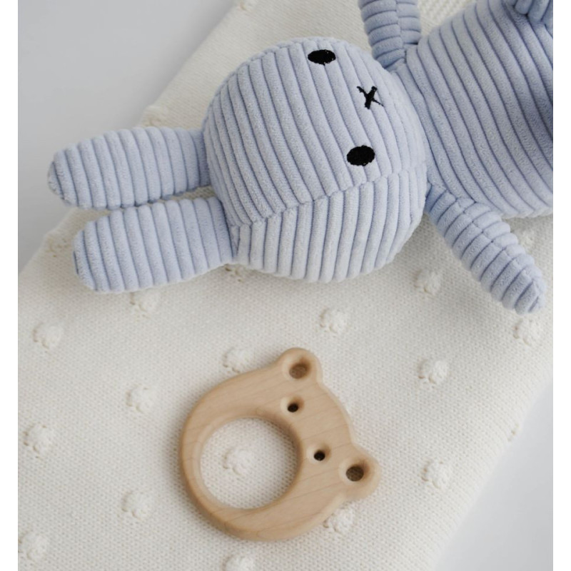 Corduroy Miffy Bunny with a soft Popcorn Blanket and a natural wooden Frisky Frog teether, beautifully packaged in a premium gift box—perfect for newborns and baby showers.