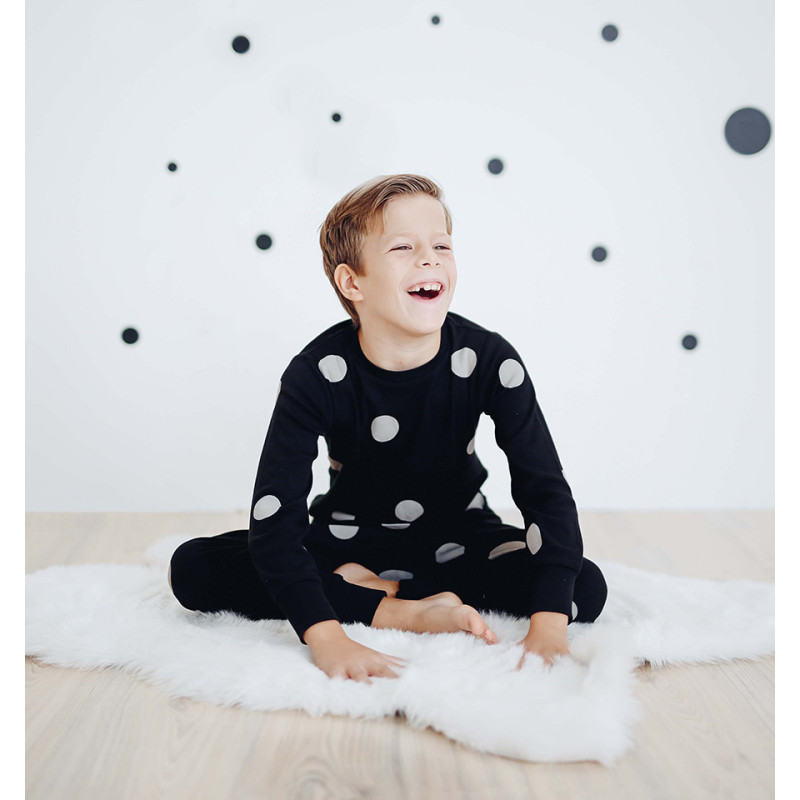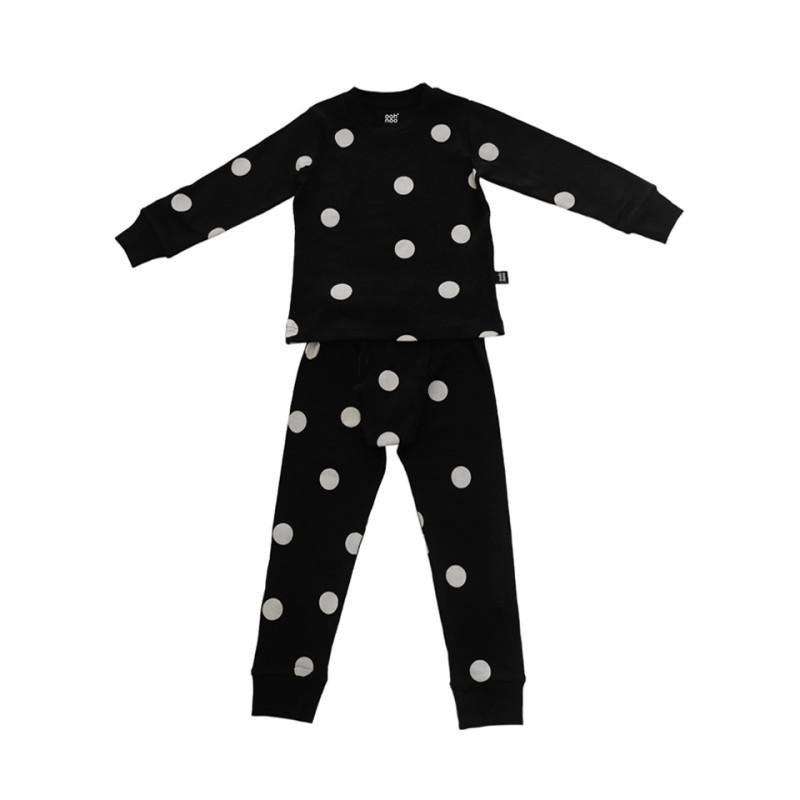 Cotton Kids Pyjamas – Black with grey dots
