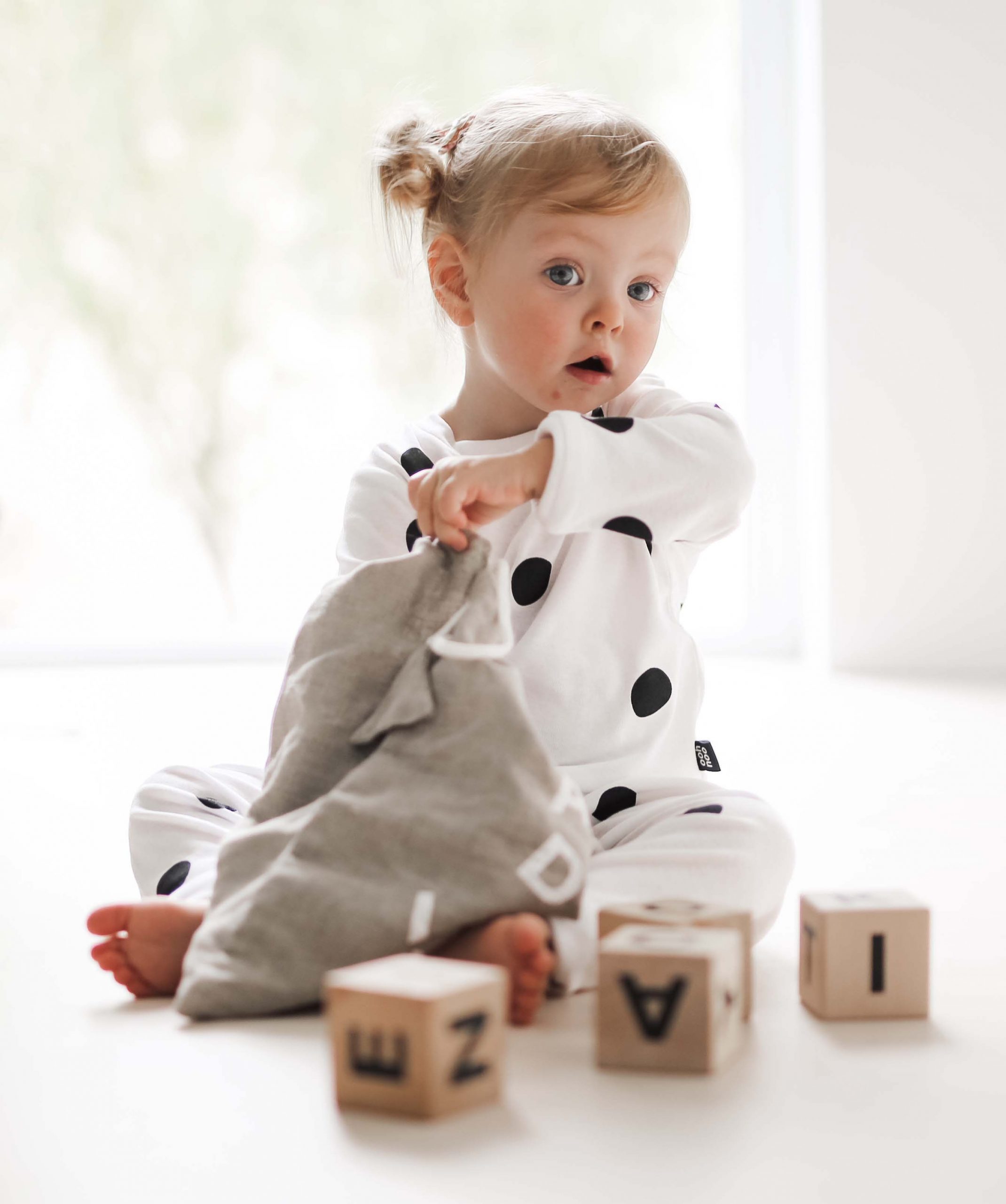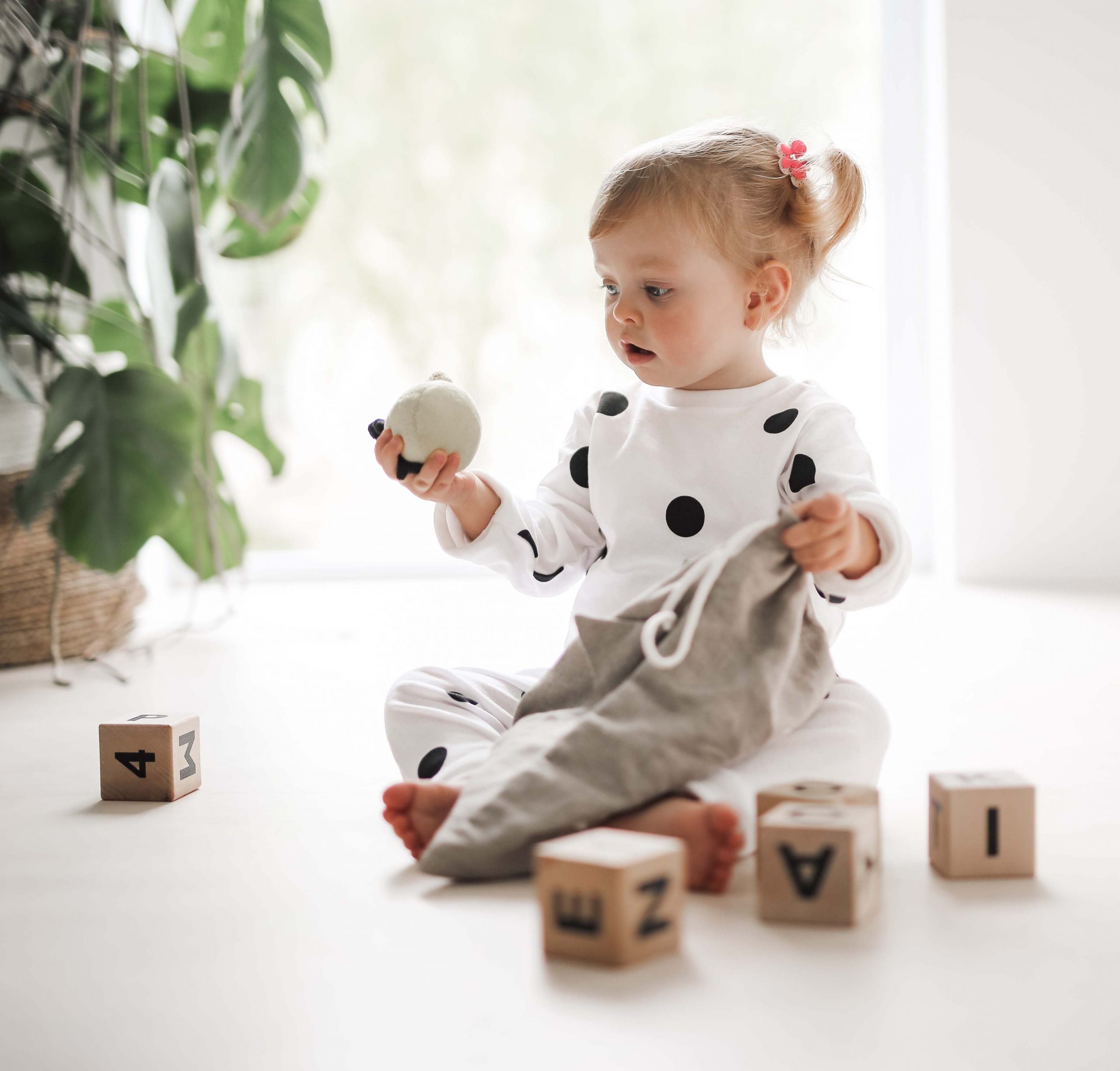 - A cloth bag that you can’t see into with a drawstring so you can adjust its opening so you or your toddler’s hand can reach inside.