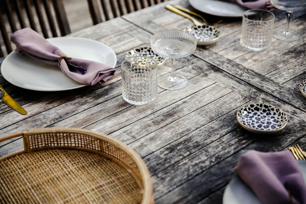 Putting plates of different shapes, sizes and patterns on the table can amp up your al fresco experience. Stylish glassware, designer napkins and beautiful plates will give your table an instant lift and make it more beautiful.