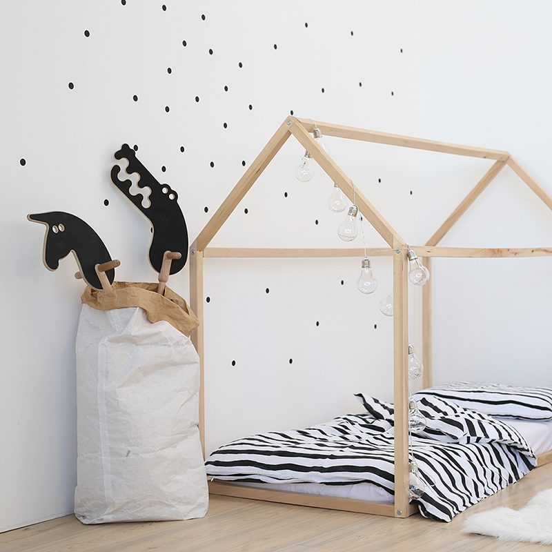 STEP THREE: Add just a few accents or unique toys that will give your child a chance to role-play and develop his or her imagination in countless ways. Two of our favourites are Mister Crocodile on a Stick, who – though always hungry – is ready to race around the room and have a good time (a great toy for getting kids to be active and for developing motor skills!); and our popular Blackboard Toy Pram is a special toy for boys or girls to practise taking care of their dolls or cuddly crocheted rabbits.