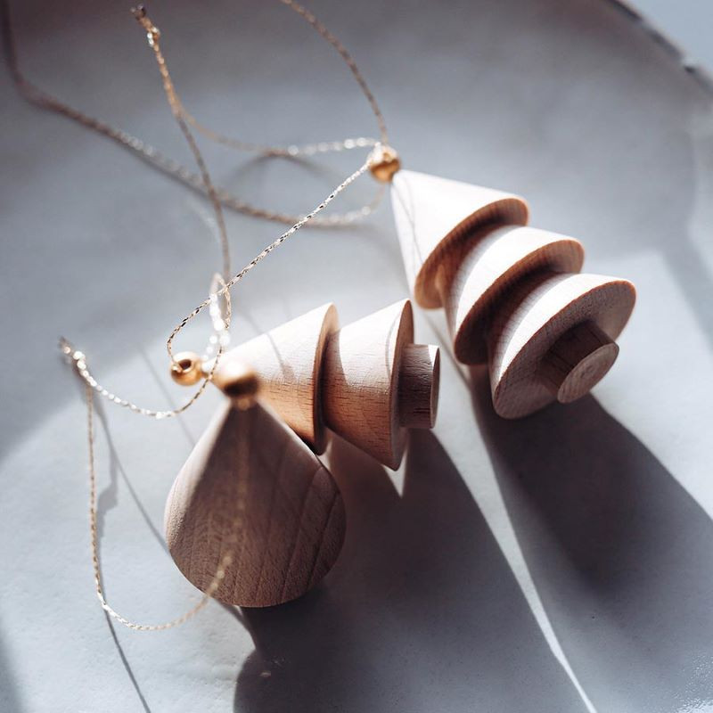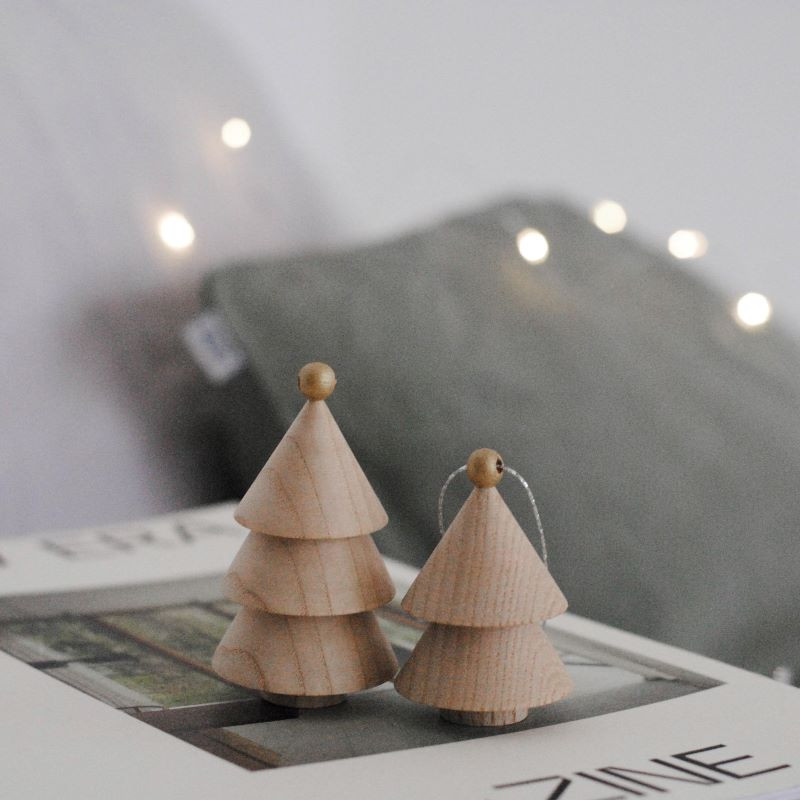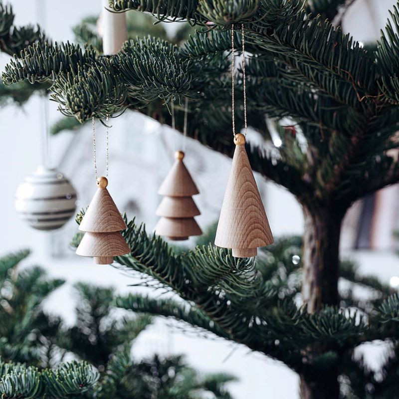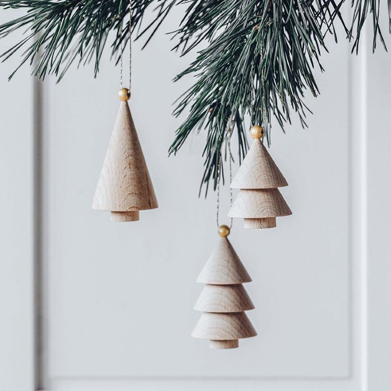 Adorn your Christmas tree with this set of three wooden minimalistic tree ornaments.