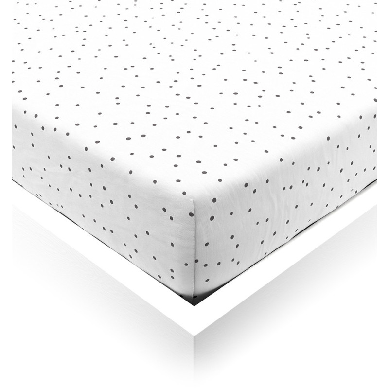 An extremely-soft fitted sheet for your toddler's bed or cot. Made of pure cotton jersey, it is easy to put on the mattress and is as soft as the touch of a mother's hand. Not to mention that the pattern of random black dots on the white background playfully combines well with all of our duvet covers and pillowcases.
