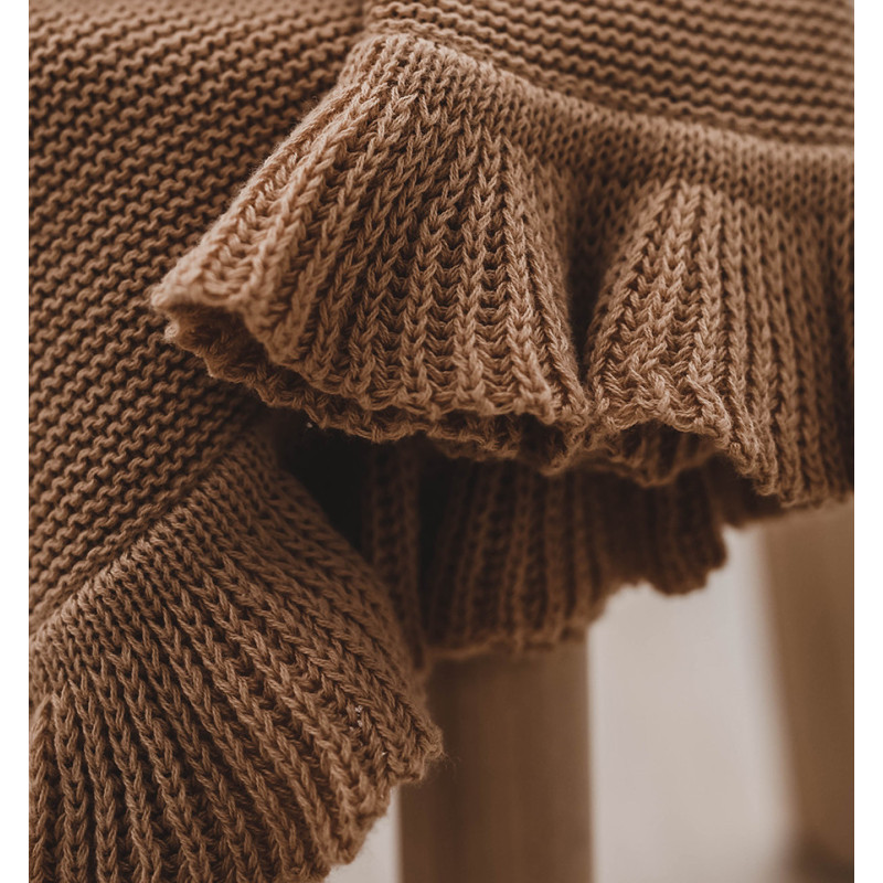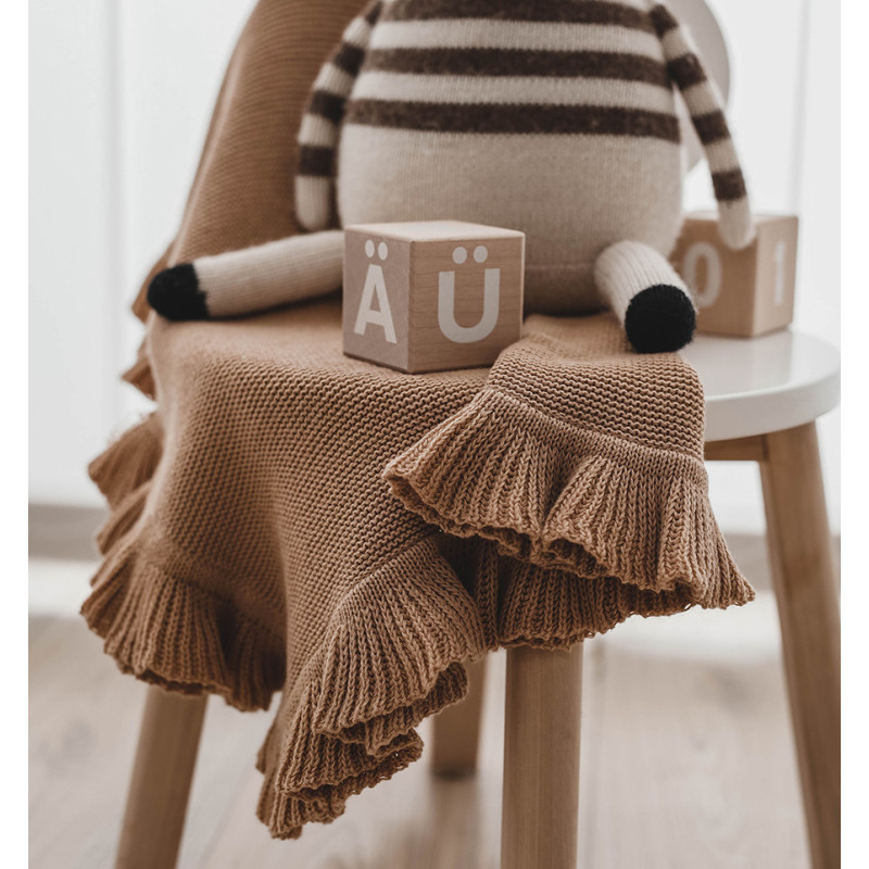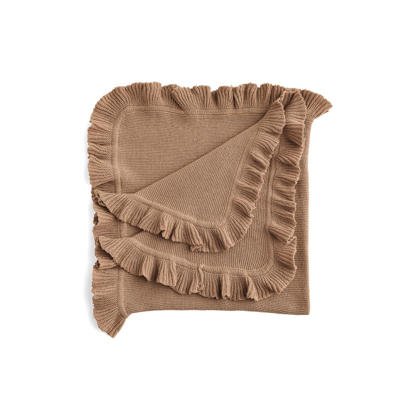 Keep your baby covered in style with this soft and gentle blanket adorned with ruffles in mocha colour. Perfect for covering your baby while in the bassinet, pram or car seat.
