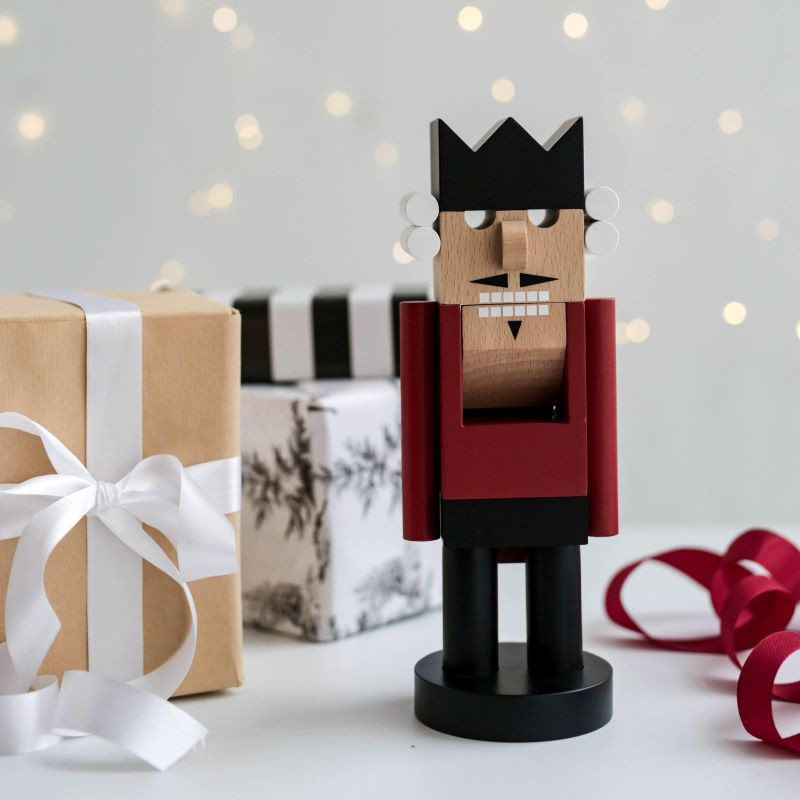 This nutcracker reimagines a beloved classic with modern grace — a sculptural guardian of festive cheer shaped in clean, refined lines. Crafted from smooth, solid wood, it carries the familiar silhouette of the holiday soldier, yet distilled into a minimalist form that feels as timeless as it is contemporary. A quiet ode to tradition, dressed in simplicity and elegance, it stands like a small piece of art for the season.