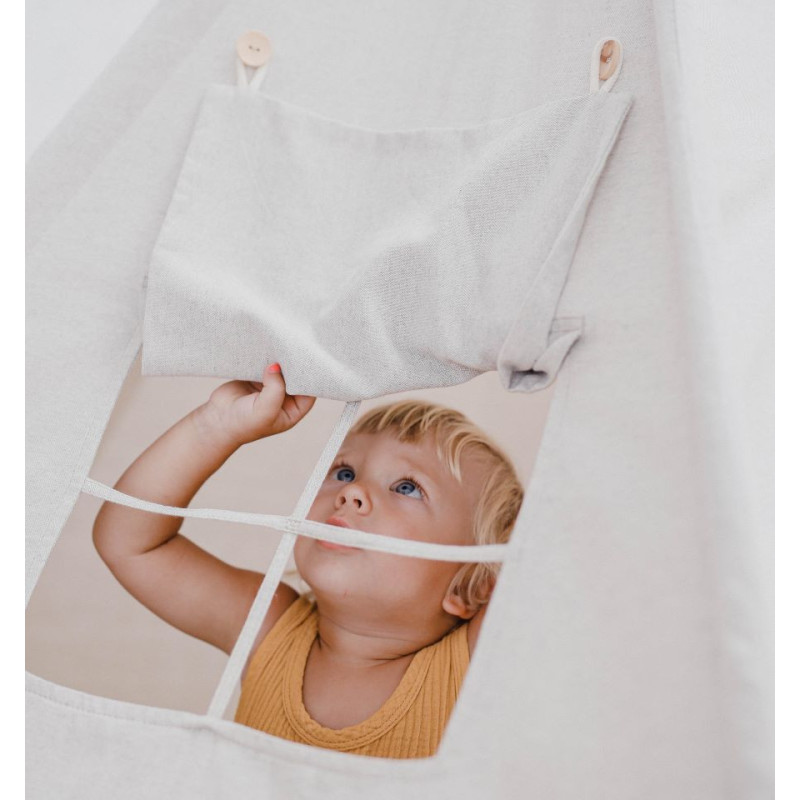 Our spacious Teepee tent in a neutral colour is big enough for friends and even parents. It can even be used indoors and outdoors.