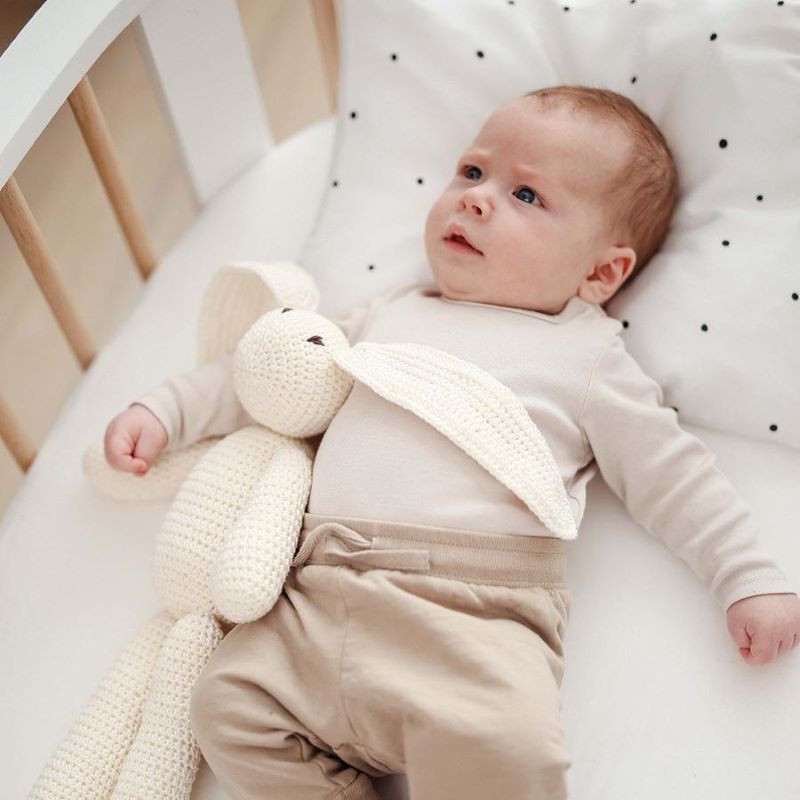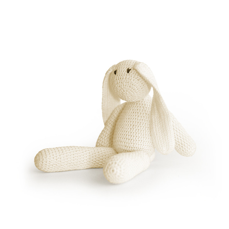 A soft, hand-made cotton crocheted bunny, made with lots of love and attention.