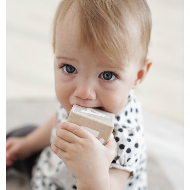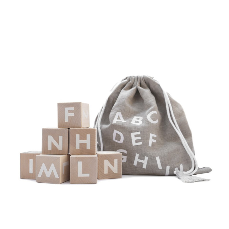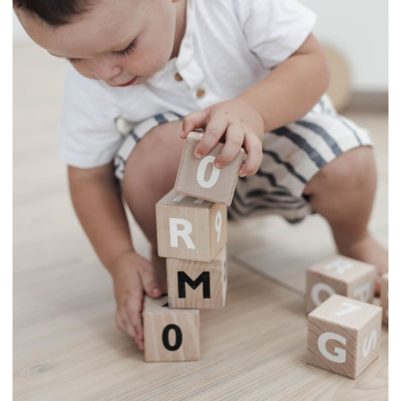 A set of 10 wooden blocks designed to inspire creative play, enhance fine motor skills, and introduce letter learning.