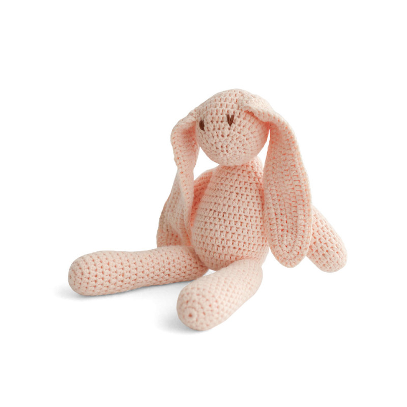 A soft, hand-made cotton crochet bunny, made with lots of love and attention.
